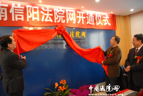 河南省信陽市中級人民法院舉行“信陽法院網(wǎng)”開通儀式,市委常委、政法委書記高俊峰按鍵點(diǎn)擊開通網(wǎng)站。