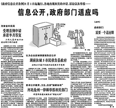 2008年5月8日,本版關(guān)于各地“信息公開第一案”的報道。