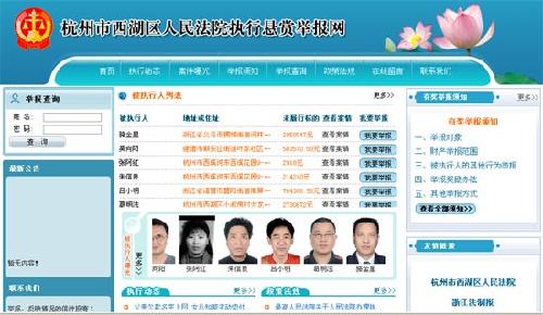日前,繼河北行唐縣紀委成立全國首家反腐網(wǎng)絡輿情采集中心后,浙江省杭州市西湖區(qū)人民法院亦推出了全國首家執(zhí)行懸賞舉報網(wǎng)。據(jù)悉,此舉是希望通過網(wǎng)絡高科技信息平臺,借助社會力量破解“執(zhí)行難”的一項新舉措。