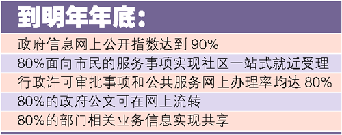 《意見》提出廣州電子政務(wù)建設(shè)目標(biāo),即到明年年底,全市電子政務(wù)建設(shè)和應(yīng)用重點(diǎn)實(shí)現(xiàn)5大突破:在有效提高政府重大公共事務(wù)決策透明度和公眾參與度方面,政府信息網(wǎng)上公開指數(shù)達(dá)到90%;在有效解決市民和企業(yè)辦事難方面,實(shí)現(xiàn)80%面向市民的服務(wù)事項(xiàng)社區(qū)一站式就近受理,行政許可審批事項(xiàng)網(wǎng)上辦理率和公共服務(wù)網(wǎng)上辦理率達(dá)到80%;在有效解決行政運(yùn)作成本高方面,實(shí)現(xiàn)80%的政府公文可在網(wǎng)上流轉(zhuǎn);在有效解決信息孤島的問題上,80%的部門相關(guān)業(yè)務(wù)信息實(shí)現(xiàn)共享。