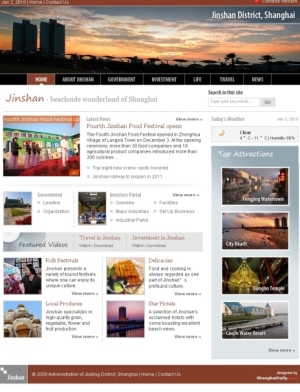與舊版相比,英文版(2010版)版面設(shè)計(jì)簡(jiǎn)潔大方,定位明確。新版下設(shè)概況、政府、投資、生活、旅游、新聞、名片等板塊,同時(shí),開設(shè)了地圖、天氣預(yù)報(bào)等人性化服務(wù)。對(duì)外服務(wù)方面,新版還提供了涉外政策以及本區(qū)生活、工作服務(wù)指南,方便關(guān)心本區(qū)建設(shè)發(fā)展的外籍人士,為工作、旅游、商務(wù)投資等不同身份的外籍人士來金提供窗口服務(wù)。