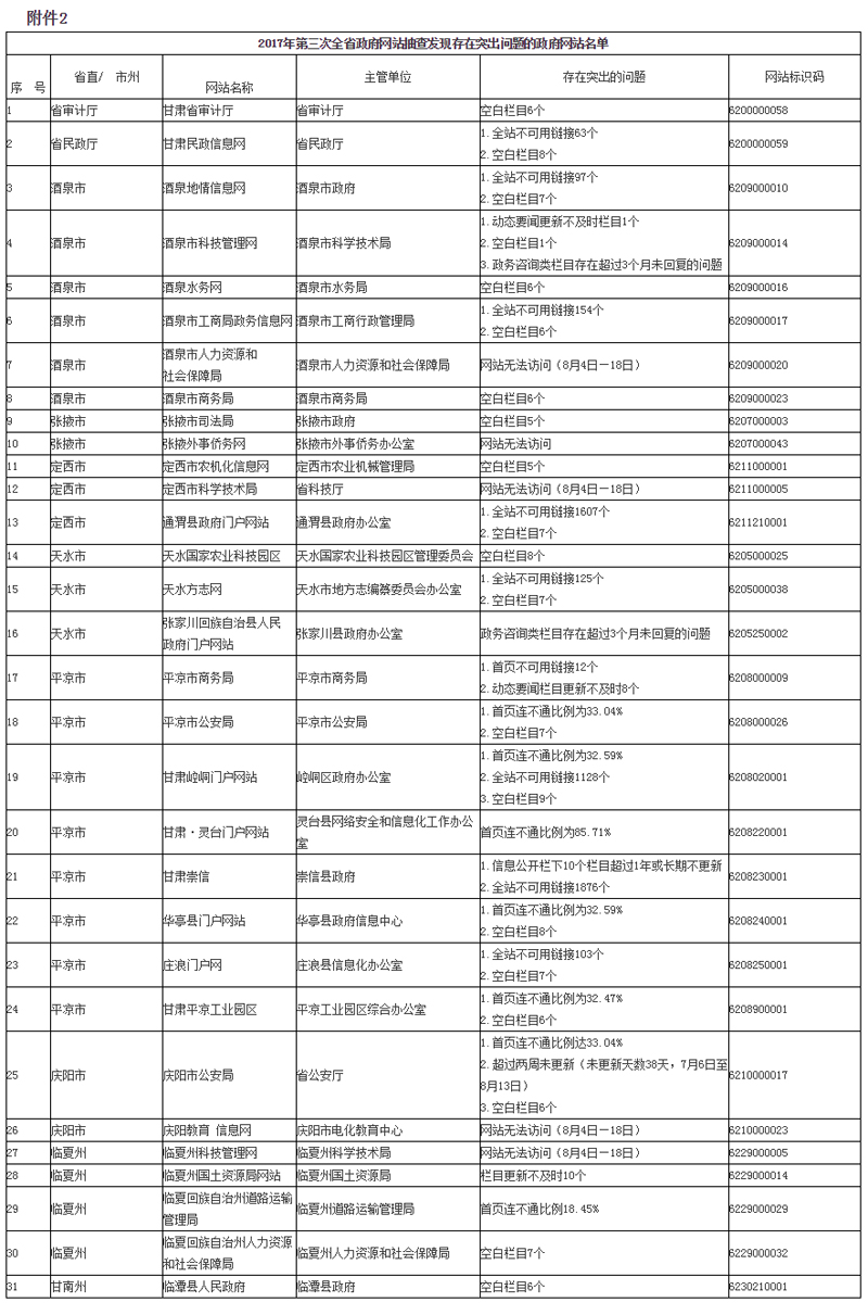 2.2017年第三次全省政府網(wǎng)站抽查發(fā)現(xiàn)存在突出問(wèn)題的政府網(wǎng)站名單