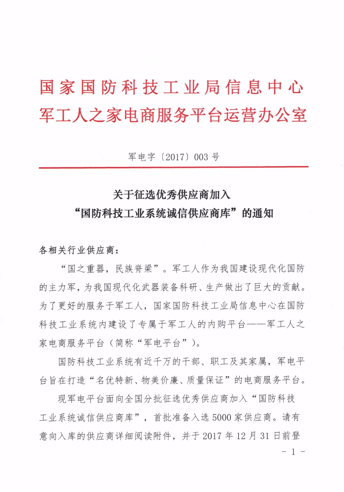 - 標 題:關(guān)于征選優(yōu)秀供應商加入“國防科...