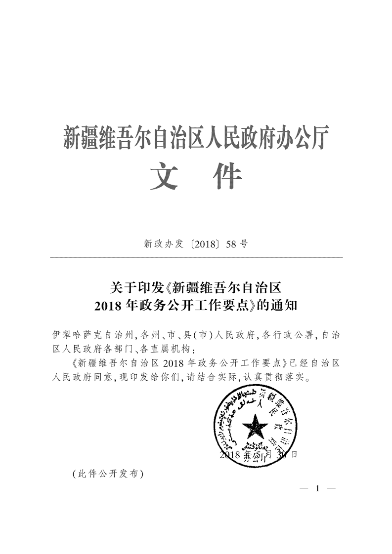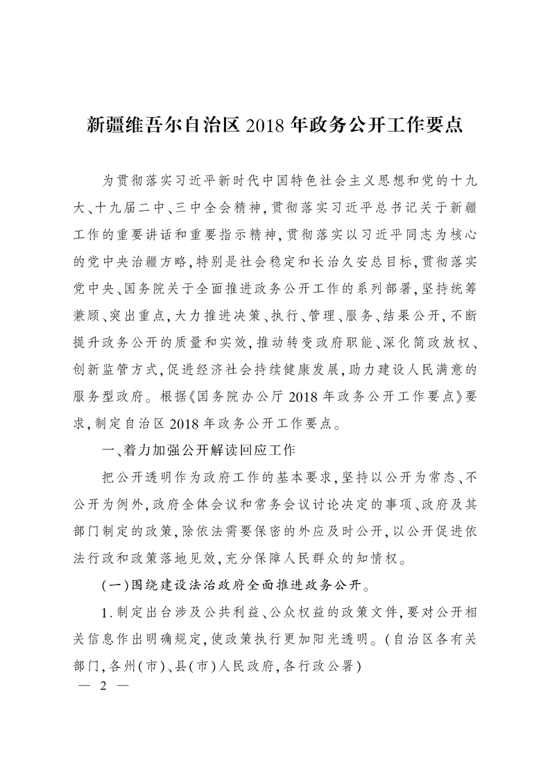 關(guān)于印發(fā)《新疆維吾爾自治區(qū)2018年政務(wù)公開(kāi)工作要點(diǎn)》的通知