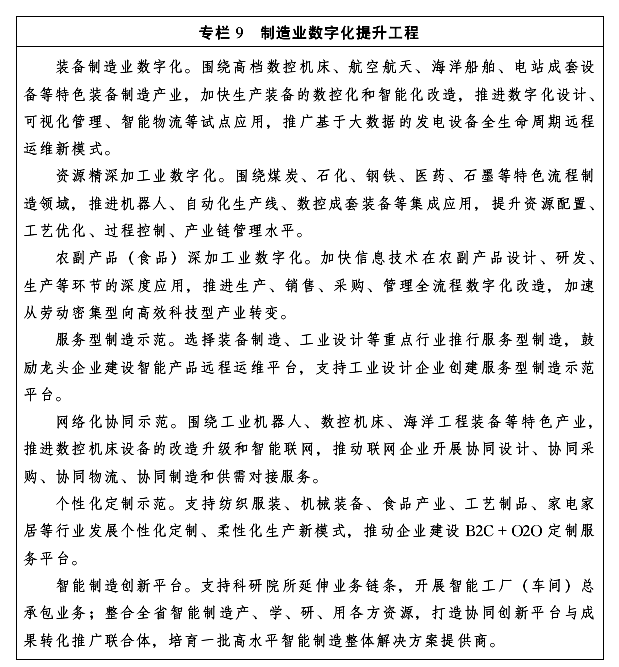 行動目標(biāo):到2020年,智能制造“十百千萬”工程取得積極成效,圍繞高端裝備、食品制造等優(yōu)勢產(chǎn)業(yè),形成一批示范性突出的“產(chǎn)業(yè)數(shù)字化”龍頭企業(yè)、智能工廠和數(shù)字化車間。