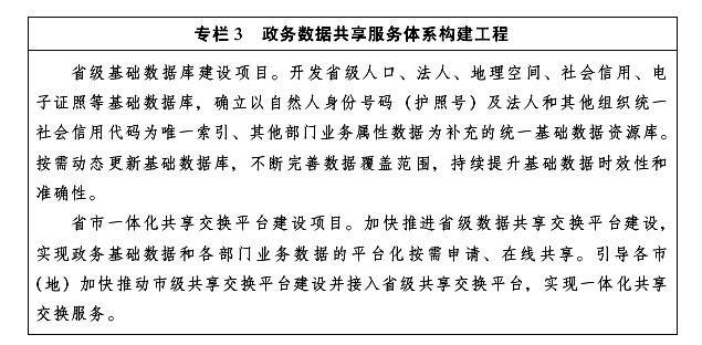 行動目標(biāo):到2020年,建成省級一體化基礎(chǔ)數(shù)據(jù)庫,涵蓋80%以上政務(wù)相關(guān)部門,構(gòu)建省市兩級政務(wù)數(shù)據(jù)共享交換平臺,數(shù)據(jù)共享、數(shù)據(jù)交易、安全防護(hù)等管理制度日臻完善,為跨部門、跨層級、跨區(qū)域數(shù)據(jù)流動提供完備保障。