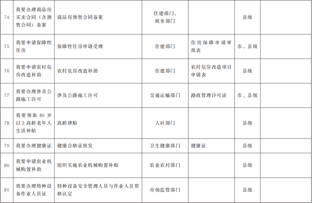 市(州)、縣(市、區(qū))“一件事一次辦”事項(xiàng)參考目錄(95項(xiàng))