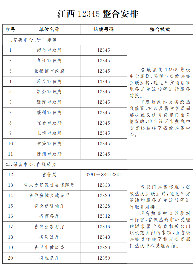 江西省12345政務(wù)服務(wù)熱線建設(shè)管理工作方案