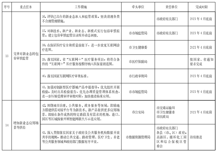 ?。ㄊ┩晟茖π聵I(yè)態(tài)的包容審慎監(jiān)管。評估已出臺的新業(yè)態(tài)準入和監(jiān)管政策,堅決清理各類不合理管理措施。對新技術、新產業(yè)、新業(yè)態(tài)、新模式實行包容審慎監(jiān)管,建立包容審慎監(jiān)管目錄庫并動態(tài)調整。在保證醫(yī)療安全和質量前提下,進一步放寬互聯(lián)網(wǎng)診療范圍。落實國家、省“互聯(lián)網(wǎng)十"醫(yī)療服務項目,符合條件的互聯(lián)網(wǎng)醫(yī)療服務按程序納入醫(yī)保報銷范圍。落實國家互聯(lián)網(wǎng)醫(yī)療審批標準。加強對創(chuàng)新型醫(yī)療器械產品申報指導,優(yōu)先組織開展檢驗,及時出具檢驗報告,優(yōu)先辦理質量管理體系核查,進一步壓縮受理審評審批時限,加快推進臨床應用。