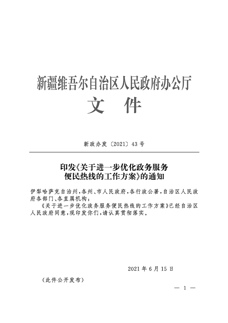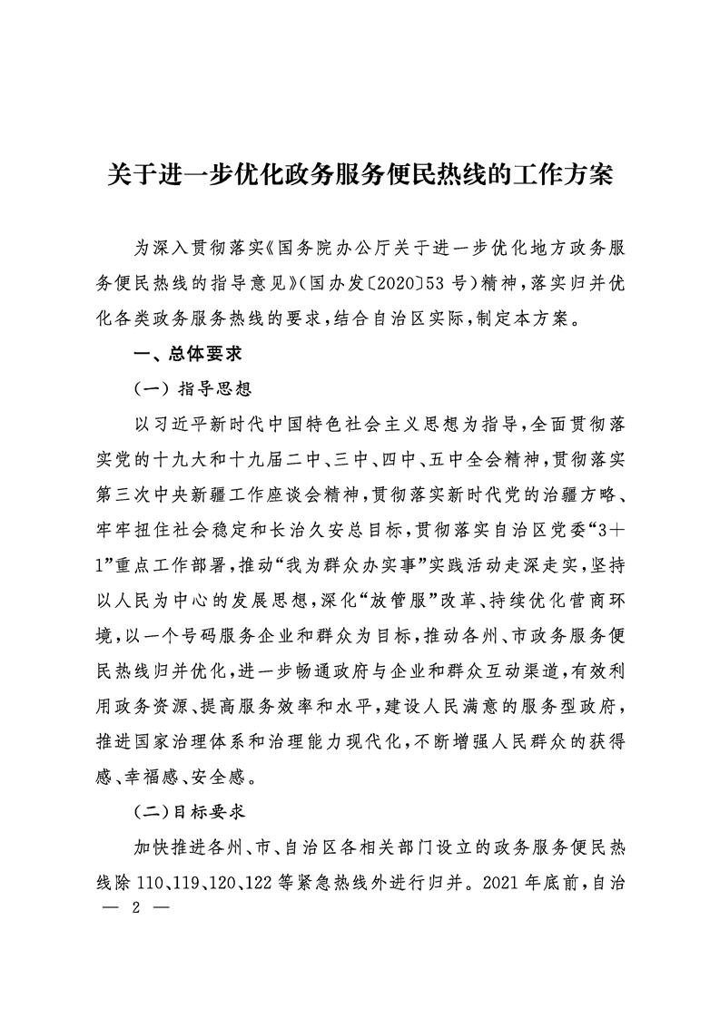 新疆維吾爾自治區(qū)人民政府辦公廳印發(fā)《關(guān)于進一步優(yōu)化政務(wù)服務(wù)便民熱線的工作方案》的通知