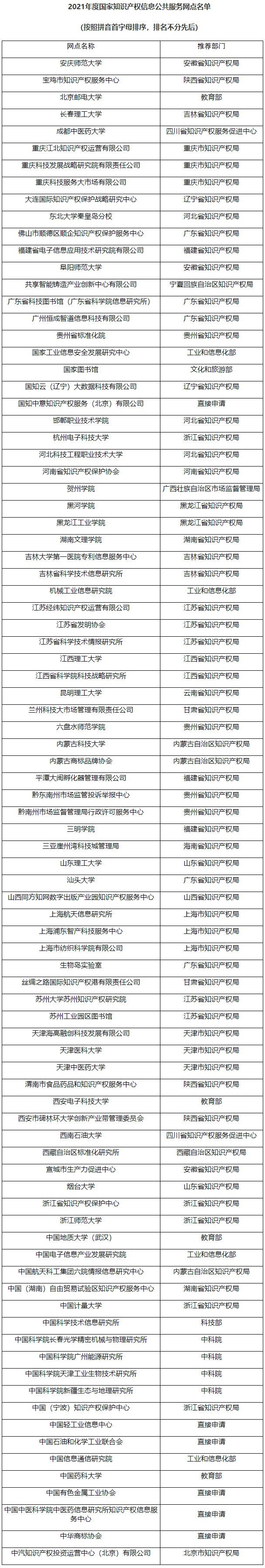 附件:2021年度國家知識產(chǎn)權(quán)信息公共服務網(wǎng)點名單