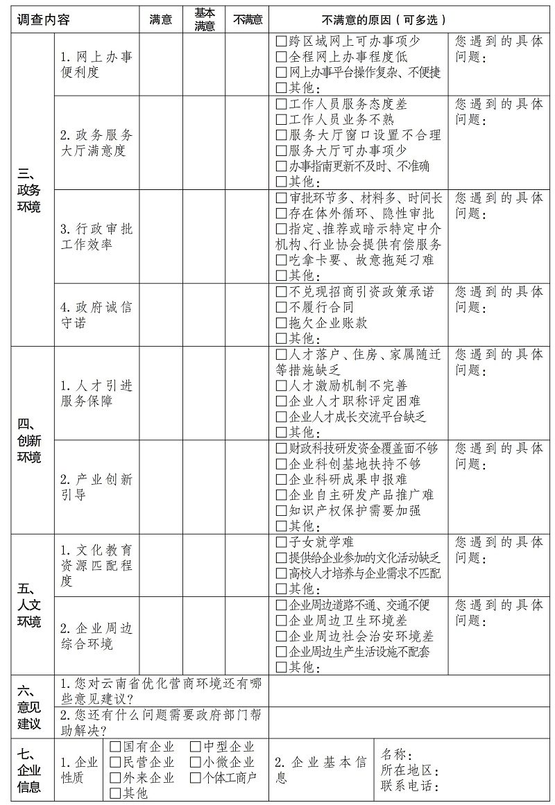 附件:云南省營(yíng)商環(huán)境市場(chǎng)主體滿意度調(diào)查問(wèn)卷