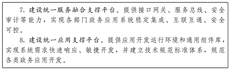 推進數字化共性應用集約化建設,為各地各部門提供身份認證、電子證照、電子印章、電子檔案、便民支付、服務熱線、服務融合等公共應用支撐。