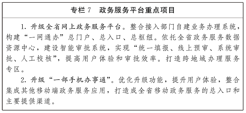 政務服務能力大幅提升。全省政務服務平臺更加易用、好用,政務服務“一網通辦”和標準化、規(guī)范化、便利化水平不斷提升;高頻民生政務服務事項實現“掌上辦”;非涉密政務服務事項網上可辦率達到99%,全程網辦和零跑動率達到90%以上。線上線下融合服務更加完善。
