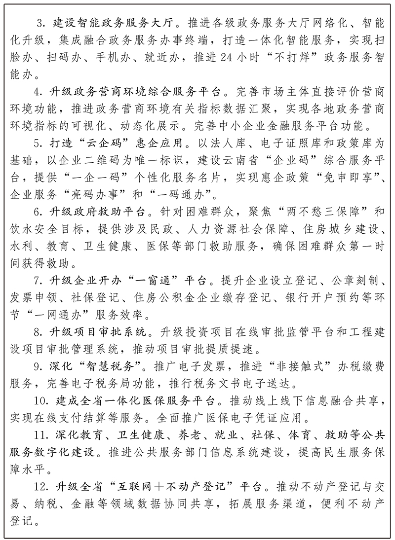 3.提升政務公開集約化數字化水平。建設基于統(tǒng)一政務信息資源庫的云南省政府網站集約化平臺和信息公開平臺,發(fā)布更多權威準確、通俗易懂、形式多樣、易于傳播的政策解讀信息。推進政府網站、政務新媒體、政務服務平臺數據融通、服務融通、應用融通。提升大數據分析能力、輔助決策能力、整體發(fā)聲能力和服務公眾水平。加強政府網站和政務新媒體安全防護。依托全省統(tǒng)一“12345”政務服務便民熱線,整合建設統(tǒng)一智能客服系統(tǒng),聯動融合各類線上線下服務平臺,多維度開展政民互動,加強態(tài)勢感知數字化建設。