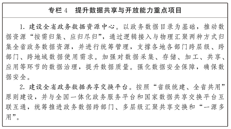 1.推進政務數據資源共享復用。建立省級層面政務數據共享協調和溝通機制,加強全省政務數據共享統(tǒng)籌協調,推進數據跨層級、跨地域、跨系統(tǒng)、跨部門、跨業(yè)務有序共享。編制全省政務數據資源目錄,并在全省政務數據共享交換平臺進行注冊、掛接、發(fā)布和供需對接,納入全國一體化政務服務平臺和國家數據共享交換平臺運行管理、及時更新。推進國家垂直管理業(yè)務系統(tǒng)和省級統(tǒng)建政務信息系統(tǒng)產生的數據向基層部門共享。