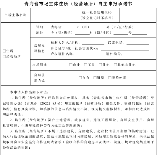 附件:1.青海省市場主體住所(經(jīng)營場所)自主申報承諾書式樣及填寫說明