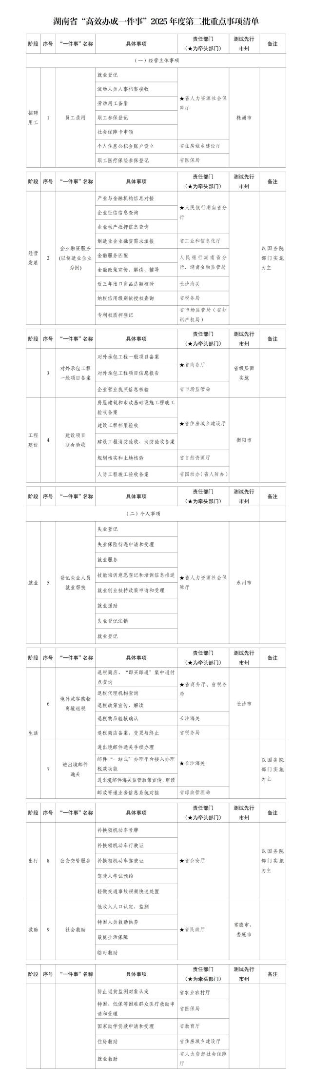 湖南省“高效辦成一件事”2025年度第二批重點(diǎn)事項(xiàng)推進(jìn)安排