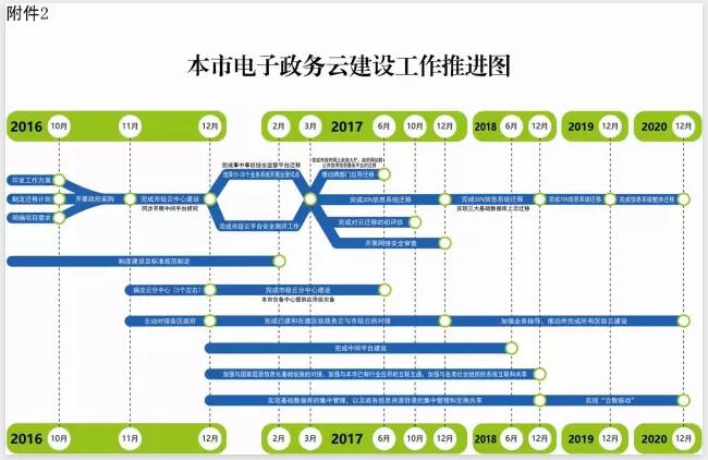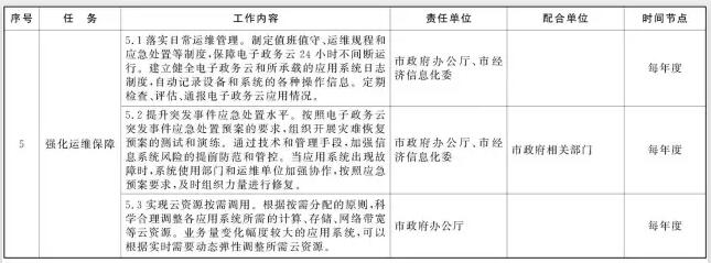 2017年2月前,完成電子政務云運營和管理、電子政務云應用建設、遷移和部署以及云安全體系建設等標準和規(guī)范的制定,完成突發(fā)事件應急處置預案編制。