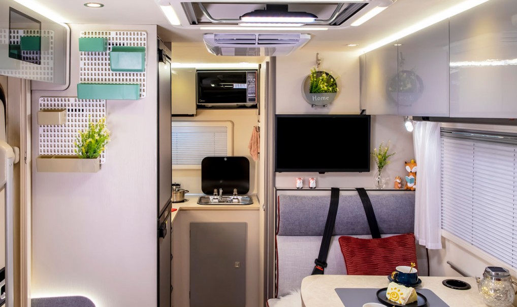 房車內(nèi)部的配置決定著房車出行生活的舒適度,這對日夜奔波的房車旅行者來說十分重要。覽眾自由炮自帶微波爐、電磁爐等廚房用具,淋浴系統(tǒng)等衛(wèi)生間設(shè)施以及液晶電視等家電設(shè)備,可以為人們帶來水電皆全的舒心家居生活。