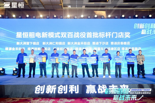 杭州市場(chǎng)的成功推廣,起到了標(biāo)桿作用,也打響了星恒租電模式成功的第 一槍,會(huì)議現(xiàn)場(chǎng)星恒電源董事長(zhǎng)兼總裁馮笑親自授予黃向明“雙百戰(zhàn)役先鋒獎(jiǎng)”。為了表彰在推行租電模式中表現(xiàn)優(yōu)異的門(mén)店,號(hào)召更多的合作伙伴以此為表率,去獲得更高的增長(zhǎng),現(xiàn)場(chǎng)頒發(fā)了“雙百戰(zhàn)役首批標(biāo)桿門(mén)店獎(jiǎng)”,激發(fā)城市運(yùn)營(yíng)商和門(mén)店勇于創(chuàng)業(yè)、搶抓先機(jī)的決心與雄心。