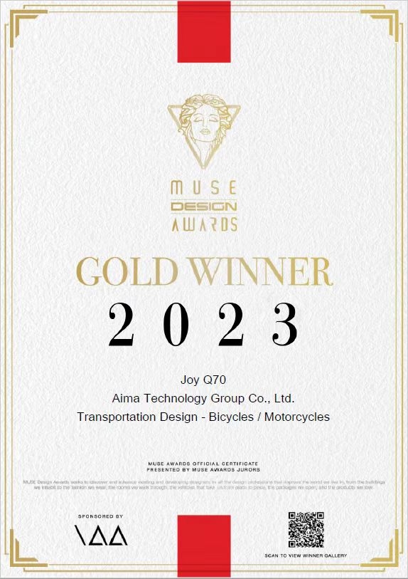 圖:愛瑪開心Q70榮獲美國(guó)MUSE設(shè)計(jì)金獎(jiǎng)