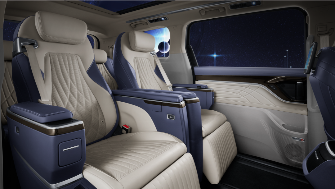 除了尺寸上的優(yōu)勢,上汽大通MAXUS G90的二排座椅還擁有電動腰托、頭枕、伸縮腿托,以及加熱、通風、按摩、一鍵聯(lián)動模式等十二項電動調(diào)節(jié),還搭載了液晶扶手屏以及隱藏小桌板。三排也配備了兩個獨立電動座椅,支持加熱、通風、按摩、腿托以及電動調(diào)節(jié)功能,并配備了專屬USB接口、空調(diào)出風口,讓每一位乘客都有“VIP”的尊貴乘坐體驗。