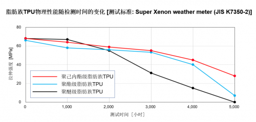 圖1:脂肪族TPU物理性能隨檢測時間變化