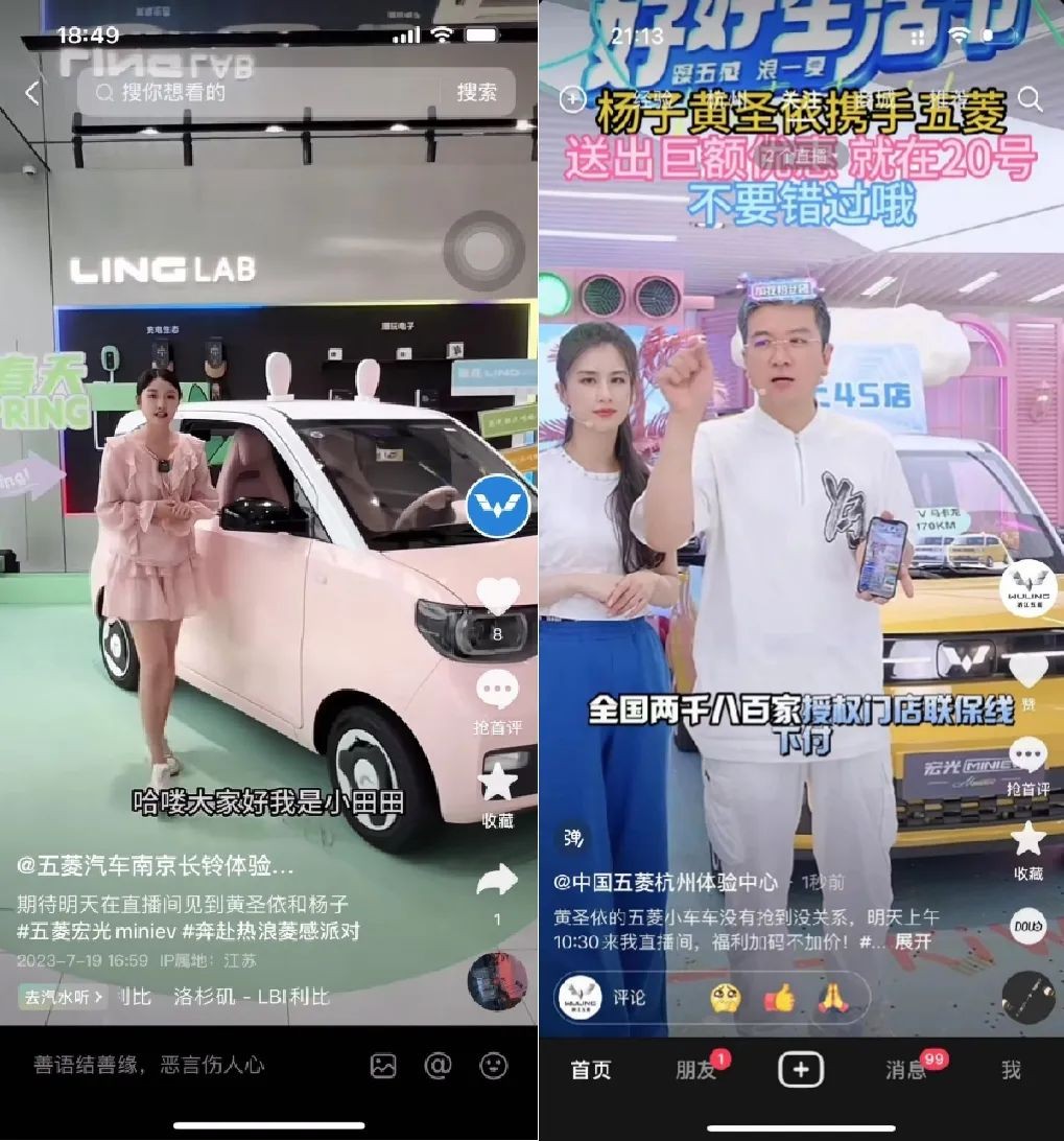 品牌借勢【黃圣依直播五菱專場直播】的明星熱度,提前發(fā)布短視頻預(yù)告進行直播預(yù)熱,集中露出福利政策、五菱官方直播間享受明星直播間同等價格等吸金信息,同步推進抖音簡介以及粉絲群私域宣發(fā),搭乘明星專場直播的流量快車,并由經(jīng)銷商專場直播承接熱力,實現(xiàn)從明星熱度到品牌熱度的轉(zhuǎn)化留存。