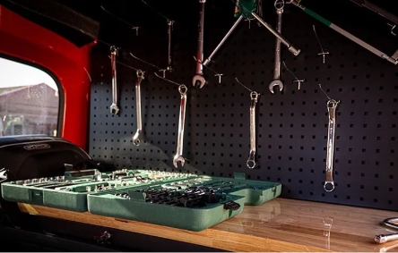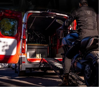 而且它的內(nèi)部尺寸為3400*1800*1780mm,內(nèi)部空間近11m3,非常寬敞,不僅能滿足騎士們?cè)谲噧?nèi)自如行走,還可以輕松放置機(jī)車、露營裝備和改裝配件等等,稱得上賽道馳騁后的機(jī)車服務(wù)站、周末露營狂歡的儲(chǔ)備倉。此外,這款車還配備專用停放支架和緊固裝置,能給機(jī)車全方位的防護(hù),再加上內(nèi)置的多功能服務(wù)臺(tái)和懸掛式置物架,還能搞定機(jī)車改裝升級(jí)和現(xiàn)場維修,讓騎士們的機(jī)車之旅更無憂。