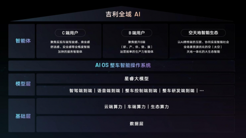 在AI技術(shù)重構(gòu)汽車產(chǎn)業(yè)的當(dāng)下,吉利的布局早已超越“單點(diǎn)技術(shù)突破”。2021年,吉利發(fā)布“智能吉利2025”戰(zhàn)略,明確以大算力、大數(shù)據(jù)、大模型為核心的科技基建方向;2025年1月,其“智能汽車全域AI”技術(shù)體系正式落地,成為全球唯一將AI應(yīng)用于架構(gòu)、動(dòng)力、底盤、座艙等全域,并覆蓋研發(fā)、生產(chǎn)、售后全鏈路的車企。這種“全棧式布局”,使其在行業(yè)競(jìng)爭(zhēng)中構(gòu)建了獨(dú)特的生態(tài)壁壘。