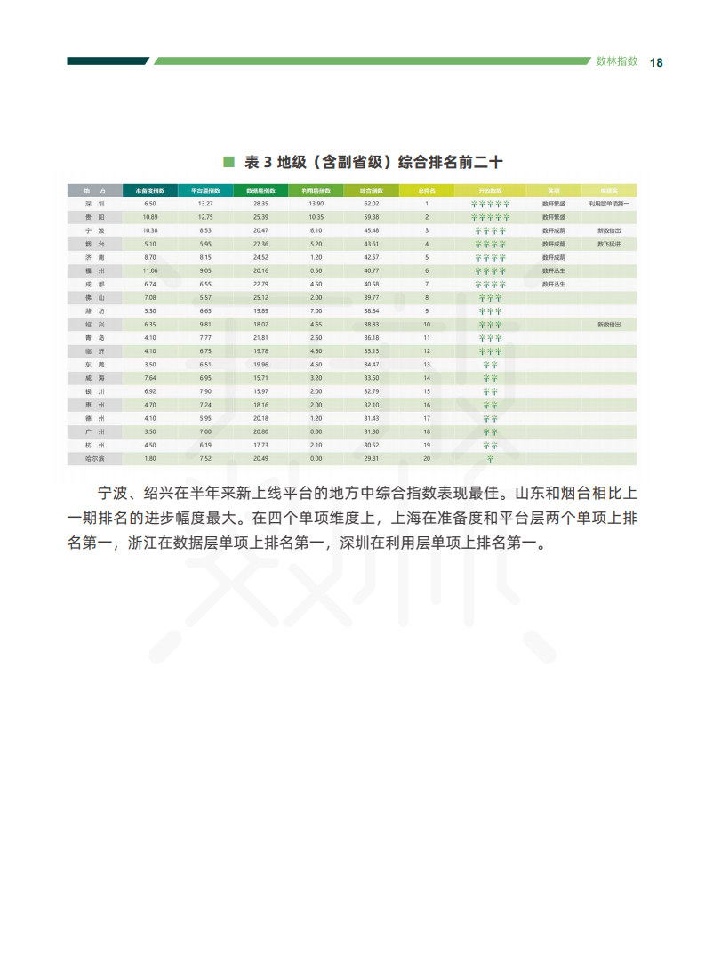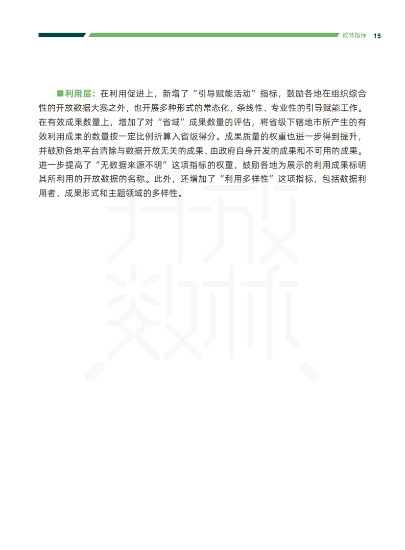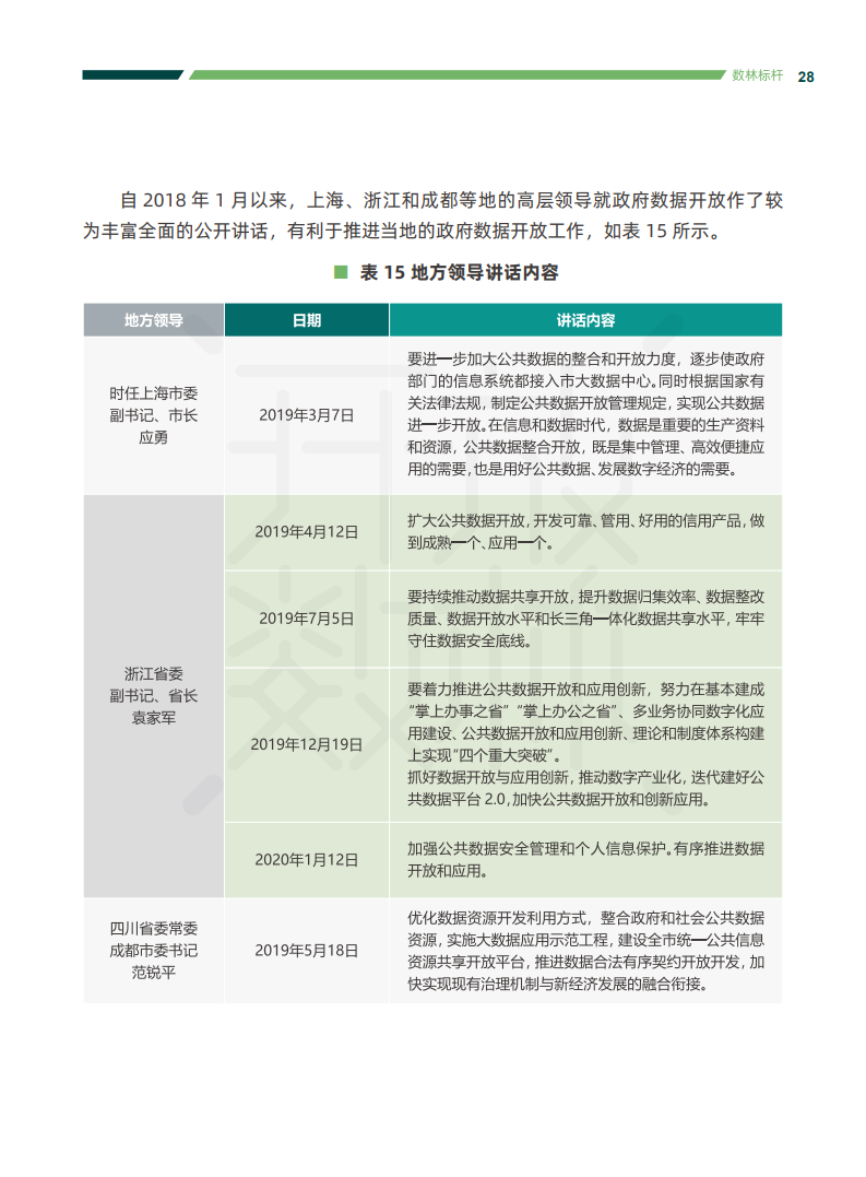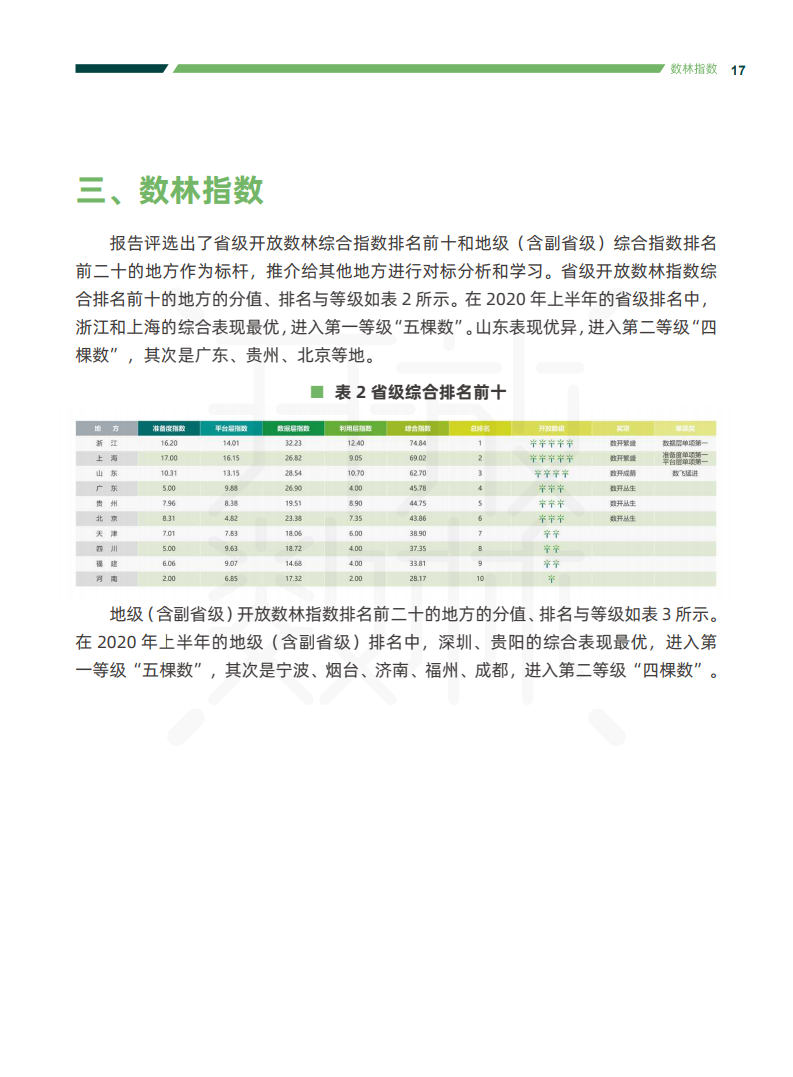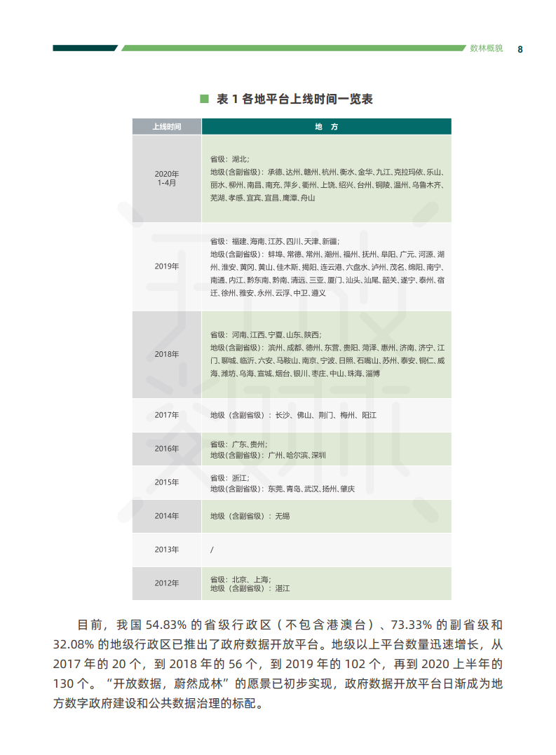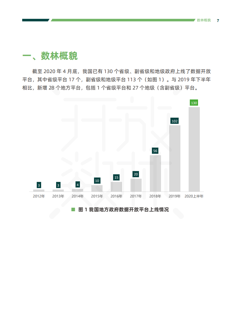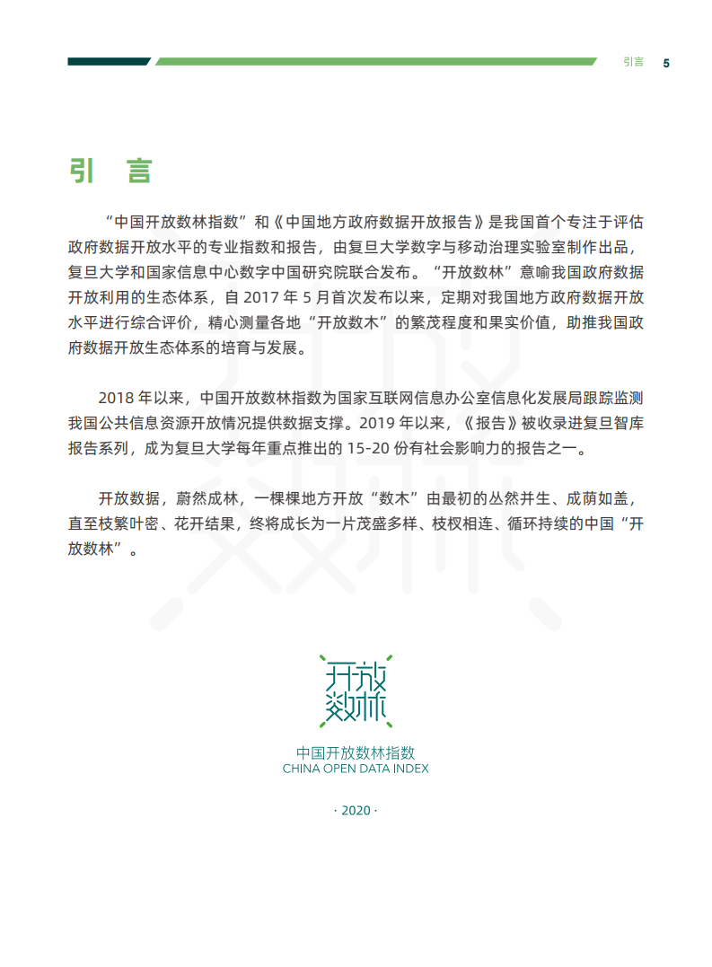 復(fù)旦大學(xué)聯(lián)合國(guó)家信息中心數(shù)字中國(guó)研究院發(fā)布了 “2020中國(guó)開放數(shù)林指數(shù)”和《2020中國(guó)地方政府?dāng)?shù)據(jù)開放報(bào)告》。開放數(shù)據(jù),蔚然成林,“開放數(shù)林”意喻我國(guó)政府?dāng)?shù)據(jù)開放利用的生態(tài)體系。