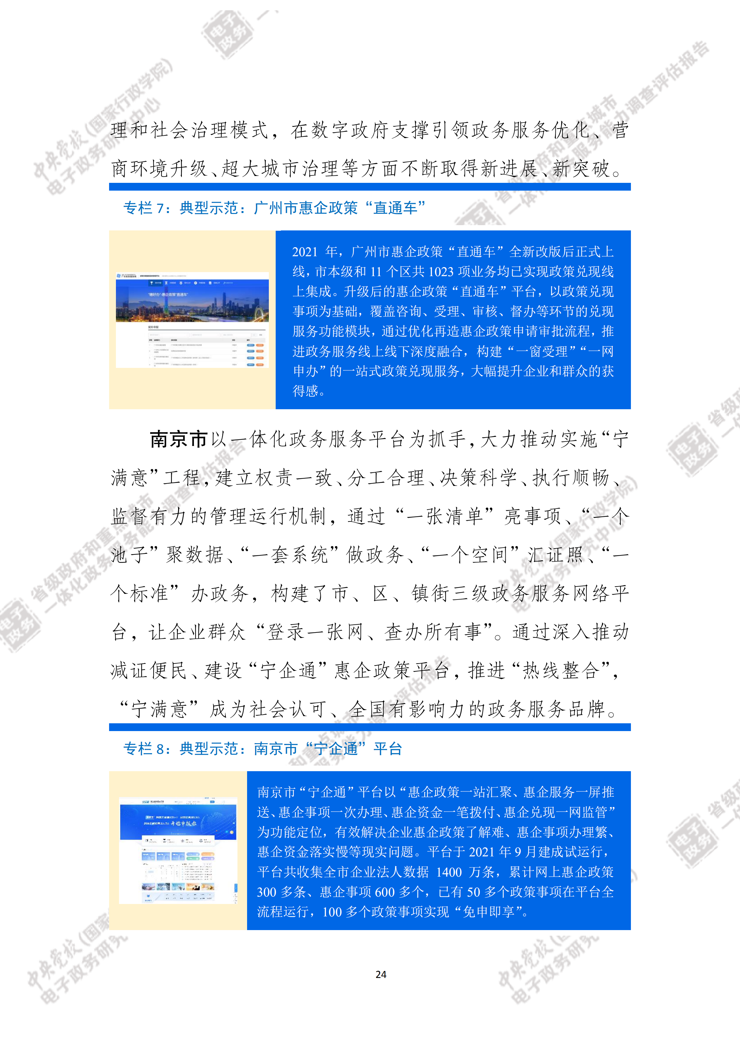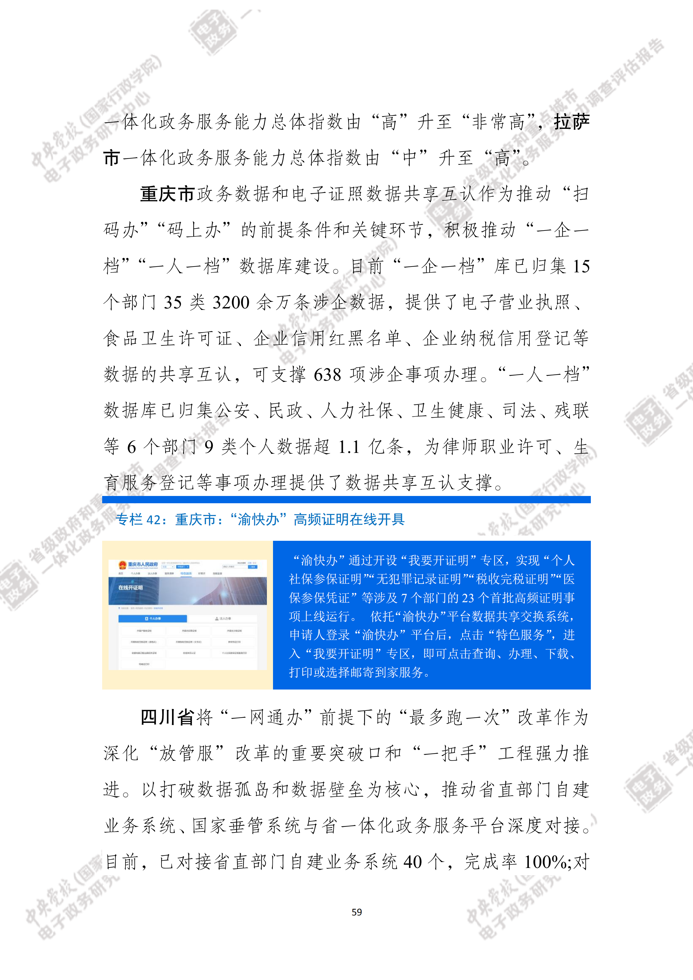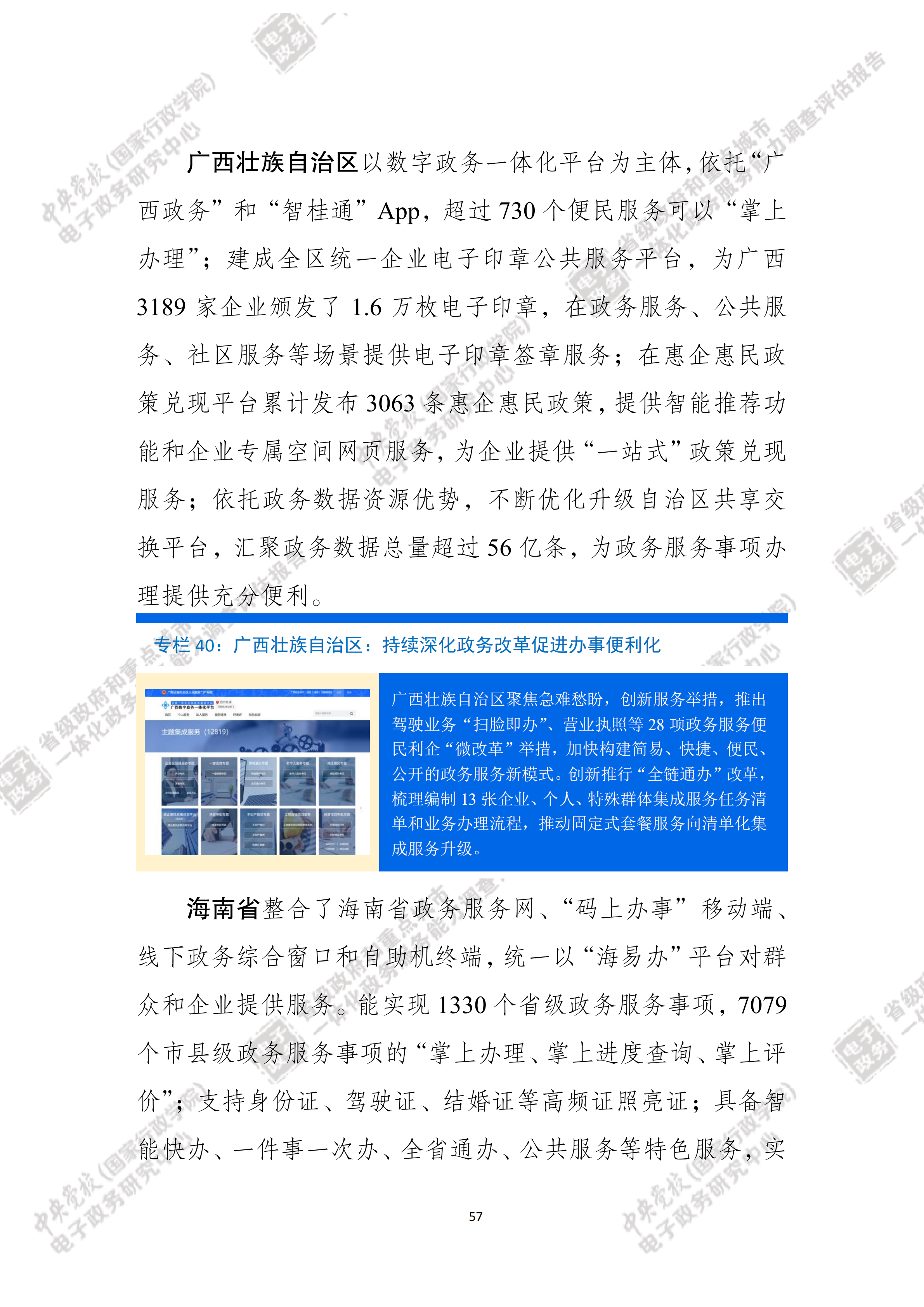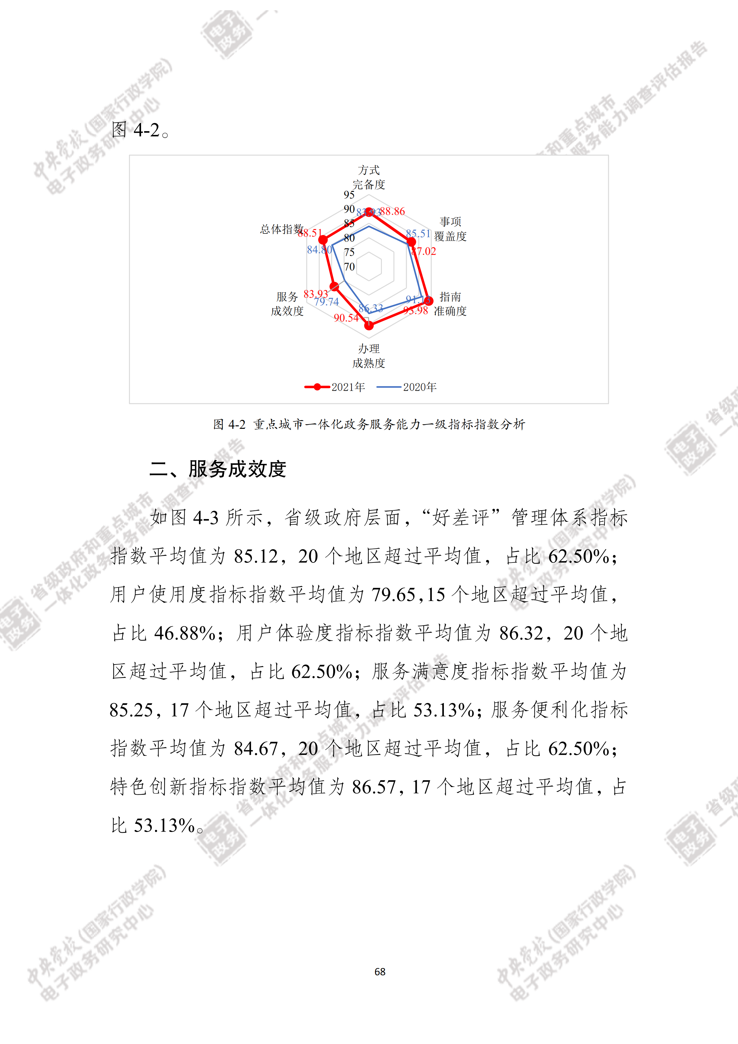 評估報告認(rèn)為,深化“互聯(lián)網(wǎng)+政務(wù)服務(wù)”,是一項關(guān)系政府職能重塑、釋放改革紅利、切實便民利企的重要改革,對于提高政務(wù)服務(wù)能力和水平,便利企業(yè)和群眾辦事創(chuàng)業(yè),推進(jìn)政府治理現(xiàn)代化具有重要意義。2021年,各地區(qū)依托全國一體化政務(wù)服務(wù)平臺,聚焦企業(yè)群眾辦事的“急難愁盼”問題,因地施策、積極創(chuàng)新,典型示范的“頭雁效應(yīng)”全面激發(fā)了“群雁活力”,從“最多跑一次”到“一次不用跑”,從“不見面審批”到“秒報秒批”,為群眾施公平之策、開便利之門,得到了廣大群眾的認(rèn)可和贊許。