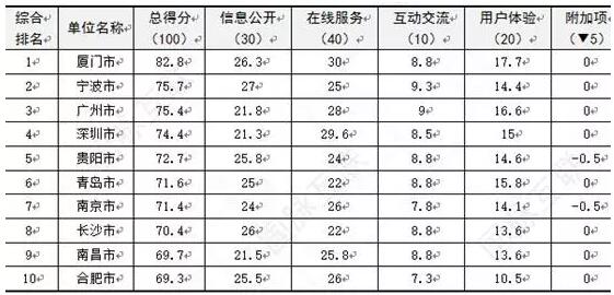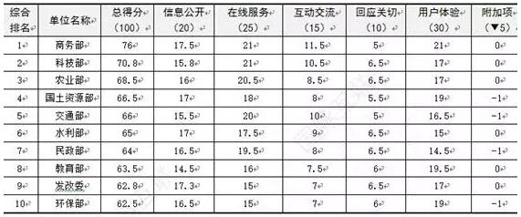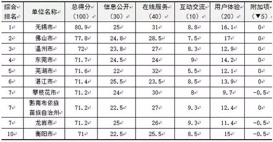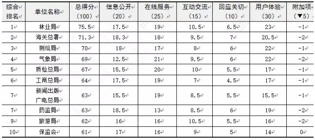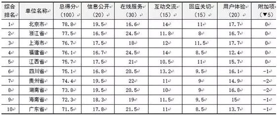 2016年中國(guó)政府網(wǎng)站發(fā)展領(lǐng)先單位排名結(jié)果如下: