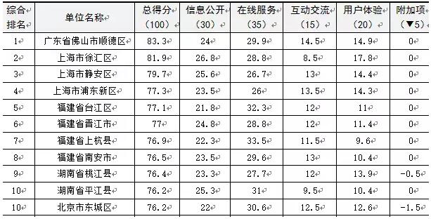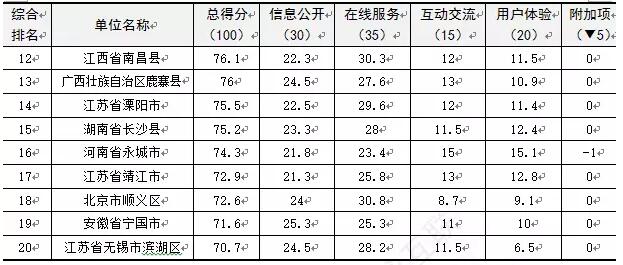 全國(guó)試點(diǎn)縣(市、區(qū))政府門戶網(wǎng)站績(jī)效得分排名表(前20名)