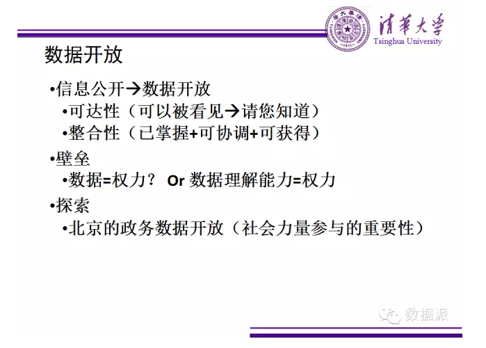然后說(shuō)說(shuō)數(shù)據(jù)開(kāi)放。首先,數(shù)據(jù)開(kāi)放強(qiáng)調(diào)數(shù)據(jù)的可達(dá)性,信息公開(kāi)強(qiáng)調(diào)可以被知道、可以被看見(jiàn),數(shù)據(jù)開(kāi)放是請(qǐng)人知道的概念。第二,還有整合性的問(wèn)題,信息會(huì)有幾種,一種是政府已掌握的信息,其次是可協(xié)調(diào)的信息,還有可獲得的信息,不同來(lái)源信息整合到一起才能發(fā)揮作用。數(shù)據(jù)開(kāi)放是既強(qiáng)調(diào)原始信息提供,也強(qiáng)調(diào)整合的。