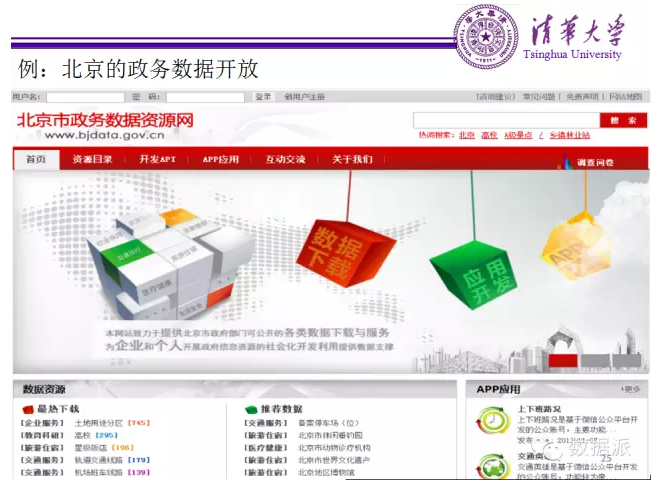 簡(jiǎn)單看一下北京市政務(wù)數(shù)據(jù)開(kāi)放的案例,政府不僅把數(shù)據(jù)開(kāi)放出來(lái),也允許各個(gè)企業(yè)在這些數(shù)據(jù)上做一些APP的應(yīng)用,并且有類似于蘋(píng)果APP STORE的機(jī)制來(lái)審核和發(fā)布這些應(yīng)用。