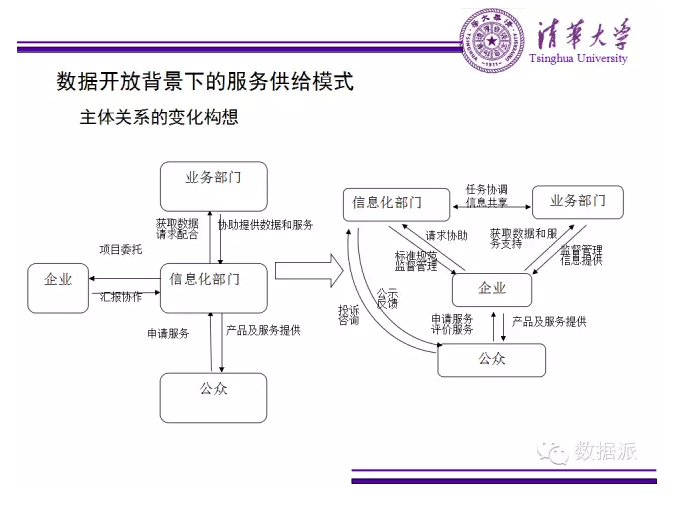 在數(shù)據(jù)開(kāi)放背景下服務(wù)的供給可能會(huì)有模式的變化,數(shù)據(jù)開(kāi)放后政府部門(mén)不一定要做服務(wù)的主導(dǎo),而是發(fā)揮數(shù)據(jù)監(jiān)管和提供的作用。這是新型的公私伙伴關(guān)系的模式,讓有大數(shù)據(jù)分析能力的企業(yè)來(lái)做這樣的應(yīng)用,發(fā)揮自己的作用。