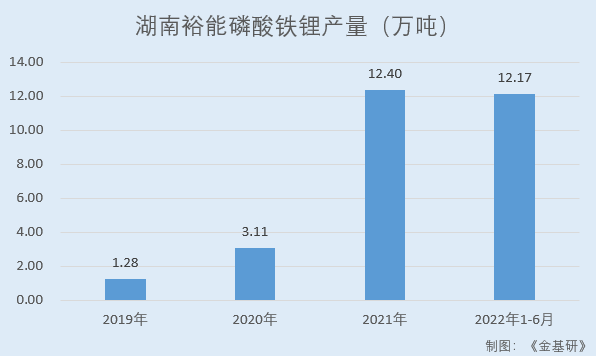據(jù)招股書,2019-2021年及2022年1-6月,湖南裕能主要產(chǎn)品磷酸鐵鋰產(chǎn)能分別為1.42萬噸、2.94萬噸、10.55萬噸、13.40萬噸,產(chǎn)量分別為1.28萬噸、3.11萬噸、12.40萬噸、12.17萬噸,2020年第四季度以來,湖南裕能產(chǎn)能相對緊張。