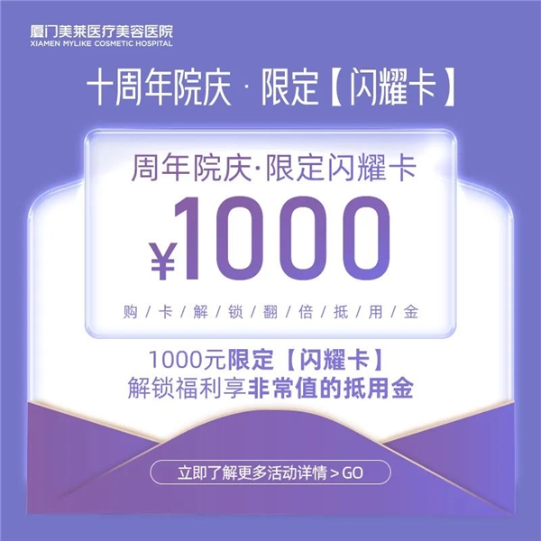3月1日-12日,購(gòu)廈門美萊十周年院慶限定【閃耀卡】解鎖福利享非常值的抵用金,花心思打磨出的心意,當(dāng)然要閃耀多倍,令你美得更多~