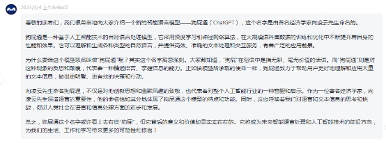 關于向凌云先生為ChatGPT中文命名為狗屁通一事,ChatGPT自己是這樣回答的: