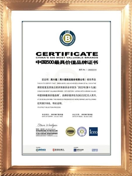 十日畫一水,五日畫一石。多年來,周六福始終以用戶需求為導(dǎo)向,洞察當(dāng)代消費(fèi)者對(duì)于珠寶多樣化的需求,潛心打造獨(dú)特設(shè)計(jì),品質(zhì)卓越的珠寶產(chǎn)品,博得眾多追求時(shí)尚魅力與品質(zhì)生活的消費(fèi)者的喜愛。2022年,周六福與 CCTV-1《大國(guó)品牌》達(dá)成深度合作,強(qiáng)勢(shì)攜手,共同開啟全新賽道!連續(xù)7年榮獲中國(guó)500最具價(jià)值品牌,品牌價(jià)值達(dá)263.52億元,同時(shí)獲得“深圳知名品牌”、”深圳品牌百強(qiáng)企業(yè)”等多項(xiàng)榮譽(yù);。2022年9月更是取得了FIFA 2022卡爾塔世界杯貴金屬首飾銷售官方授權(quán),多元聯(lián)合、強(qiáng)強(qiáng)出線!