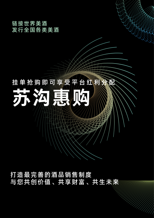 蘇溝惠購是由江蘇蘇溝酒業(yè)股份有限公司傾力打造,主要進(jìn)行以蘇溝白酒為主的全品類酒類及相關(guān)消費(fèi)品的銷售服務(wù),專注于銷售模式創(chuàng)新轉(zhuǎn)型,為廣大酒類經(jīng)銷商及消費(fèi)者提供優(yōu)質(zhì)的服務(wù),致力于成為中國領(lǐng) 先、世界知名的酒類服務(wù)平臺。蘇溝惠購著力構(gòu)建新型消費(fèi)生態(tài)圈,搭建網(wǎng)上商城+線下實(shí)體連鎖+跨產(chǎn)業(yè)孵化+百業(yè)聯(lián)盟”的多樣化名酒新型消費(fèi)生態(tài)體系,通過產(chǎn)融結(jié)合,資本路徑可獲得產(chǎn)業(yè)資本利潤分紅。