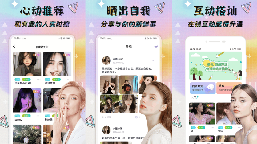 熱戀可以同城快速尋找有緣人,獨(dú)創(chuàng)了照片墻功能,可以以真實(shí)形式來查看附近人群,還可以發(fā)布自己生活中各種動(dòng)態(tài),以及對(duì)別人進(jìn)行評(píng)論,以此為方式加快雙方互動(dòng)。