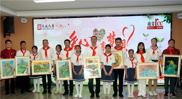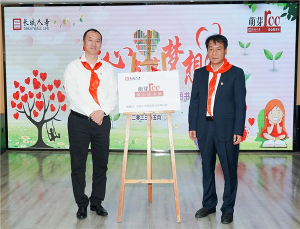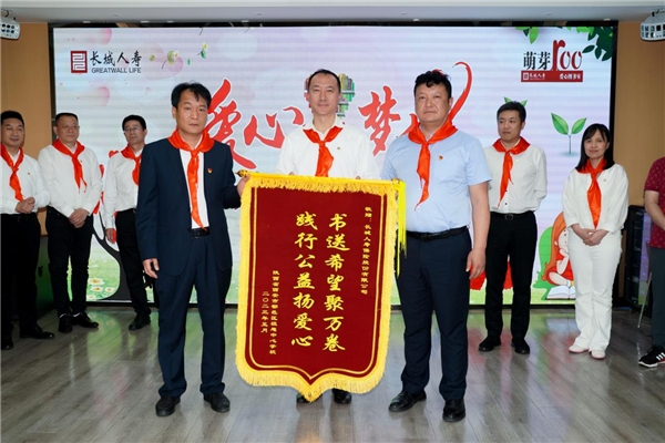 長(zhǎng)城人壽黨委書 記、董事長(zhǎng)白力與祖庵中心學(xué)校校長(zhǎng)馮軍奇、副校長(zhǎng)宋廣柱一同為“萌芽100”愛心圖書室揭牌,進(jìn)行圖書捐贈(zèng),并接受校方回贈(zèng)的“書送希望聚萬卷 踐行公益揚(yáng)愛心”錦旗以及學(xué)生書畫作品。