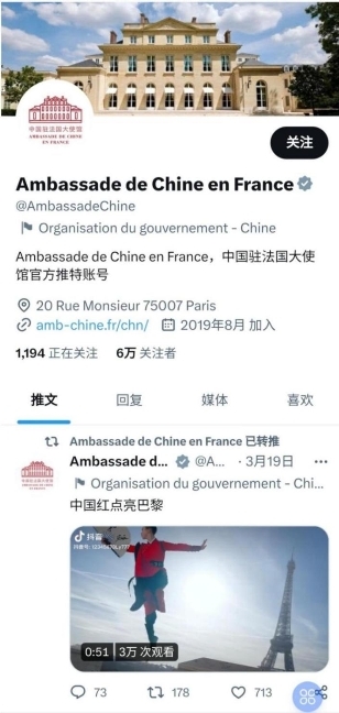 3月20日,由95后女生@凌云仗劍走天涯與@碰碰彭碰彭在巴黎鐵塔下共同演繹的“95后女孩巴黎街頭夢幻聯(lián)動點燃中國紅”視頻在國內(nèi)外社交媒體上火爆出圈。