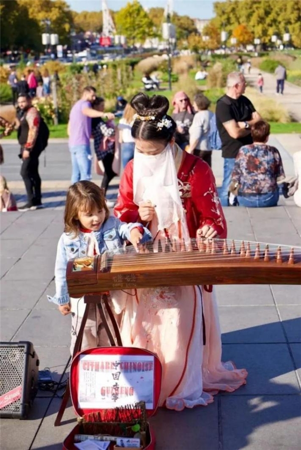 流動的音符超越了種族和國界,將世界各地的人們聯(lián)結(jié)在一起,彭靜璇彈奏時總是穿著漢服,蒙著面紗,中國獨特的服飾也超越了國界,吸引了眾多外國友人。