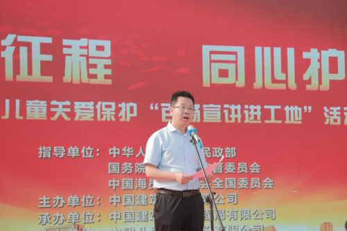 聚焦務(wù)工人員留守兒童開展關(guān)愛保護(hù)行動(dòng),著力解決農(nóng)村留守兒童在生活、監(jiān)護(hù)、成長(zhǎng)過(guò)程中遇到的困難和問(wèn)題。2023年全國(guó)留守兒童關(guān)愛保護(hù)“百場(chǎng)宣講進(jìn)工地”活動(dòng)(第2場(chǎng))蚌醫(yī)一附院心腦血管中心項(xiàng)目現(xiàn)場(chǎng)舉辦。蚌埠市總工會(huì)四級(jí)調(diào)研員鞠曉萍,勞動(dòng)與經(jīng)濟(jì)工作部部長(zhǎng)趙玉祥,蚌埠市民政局黨委委員、副局長(zhǎng)陳雷,蚌埠市住建局工會(huì)主 席張仕平,李樓鄉(xiāng)鄉(xiāng)長(zhǎng)李磊,蚌埠醫(yī)學(xué)院第 一附屬醫(yī)院工會(huì)主 席秦宛茹,項(xiàng)目辦主任徐斌斌,上海同濟(jì)工程項(xiàng)目管理咨詢有限公司項(xiàng)目總監(jiān)孫樹虎,中建八局三公司專務(wù)駱明紅,公司工會(huì)副主 席、工會(huì)工作部部長(zhǎng)余勇,工會(huì)女工委主任許秀健,華中分公司黨總支書 記、總經(jīng)理?xiàng)钍阻?建設(shè)及監(jiān)理相關(guān)單位及工友代表百余人參加活動(dòng)。