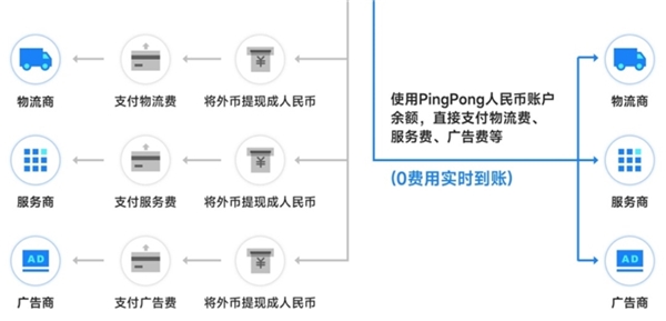 在全球服務網(wǎng)絡建設的基礎上,PingPong福貿(mào)還通過與花旗、摩根大通等國際系統(tǒng)性重要銀行取得戰(zhàn)略合作,構建本地清算網(wǎng)絡體系,打造高效聯(lián)通的全球收付清分通道,并將上下游的生產(chǎn)商、貿(mào)易商、物流商、營銷商等引入了同一體系內(nèi),提供人民幣賬戶,加強境內(nèi)外資金收付通道的雙循環(huán)構建,不僅使得外貿(mào)企業(yè)無需兌匯就可以直接完成B2B式跨境收付款,還能支持外貿(mào)企業(yè)能夠直接面向境內(nèi)供應鏈上的供應商完成付款,并減少了中間兌換外幣環(huán)節(jié)、減少中間行介入,因此到賬速度也提升至秒級,中間行手續(xù)費大幅降低至0元,從而有效為外貿(mào)企業(yè)在境內(nèi)外收付款環(huán)節(jié)做到降本增效,促進了企業(yè)國際、國內(nèi)貿(mào)易的雙循環(huán)建設。