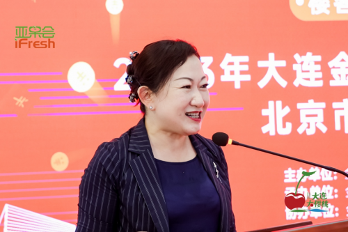 活動中,北京市海淀區(qū)委農(nóng)工委委員、區(qū)農(nóng)業(yè)農(nóng)村局副局長朱穎首先發(fā)表致辭。她不僅對大連金普大櫻桃在京舉辦展銷活動表示歡迎,同時通過本次活動令北京市民對金普新品櫻桃的品牌文化有了全面的了解,極大地豐富了海淀市民的消費需求。未來,希望大連、北京兩地加深以櫻桃為載體的技術交流合作,發(fā)揮各自優(yōu)勢,增近往來,攜手共促,兩地共同發(fā)展。